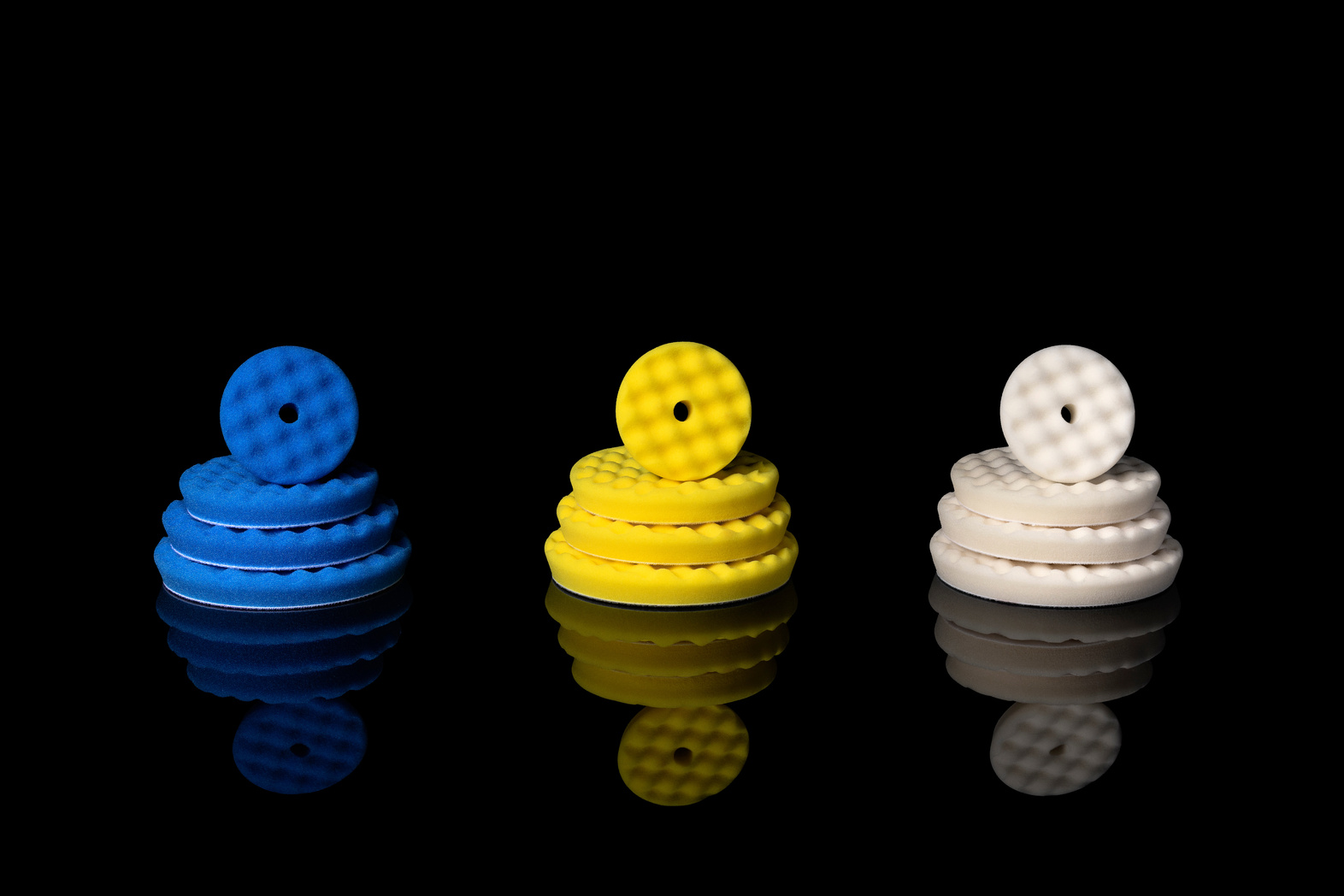 The waffle design of the pad surface generates a smooth polishing experience and increases user comfort. Since the waffle-shaped face of these pads does not totally touch the surface, they work at a cooler level, reducing the risk of overheating the paint.